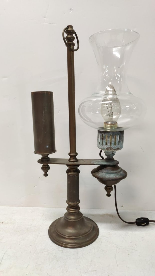Electrified antique brass student lamp