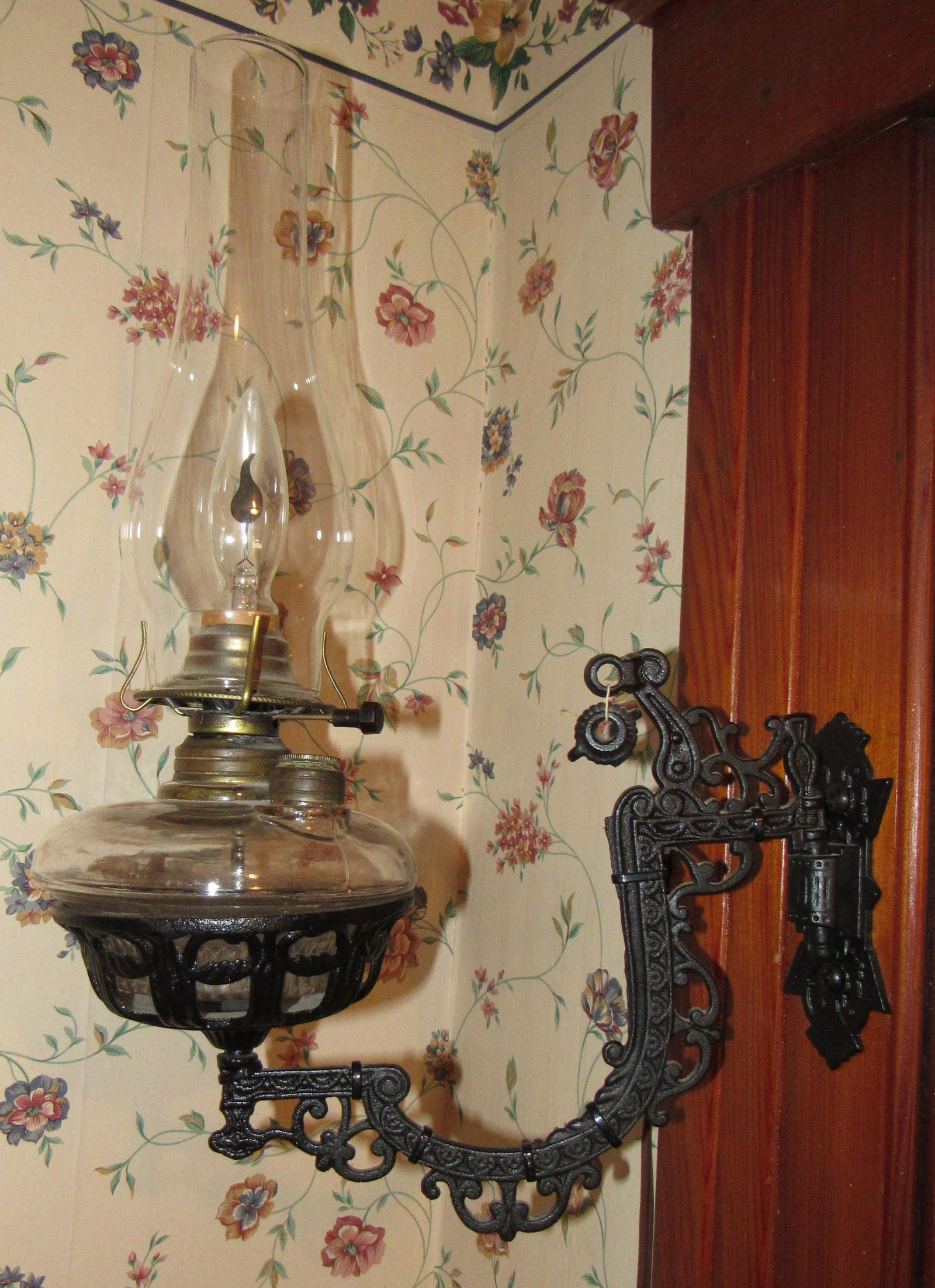 Electrified Oil Lamp with Cast Iron Wall Bracket
