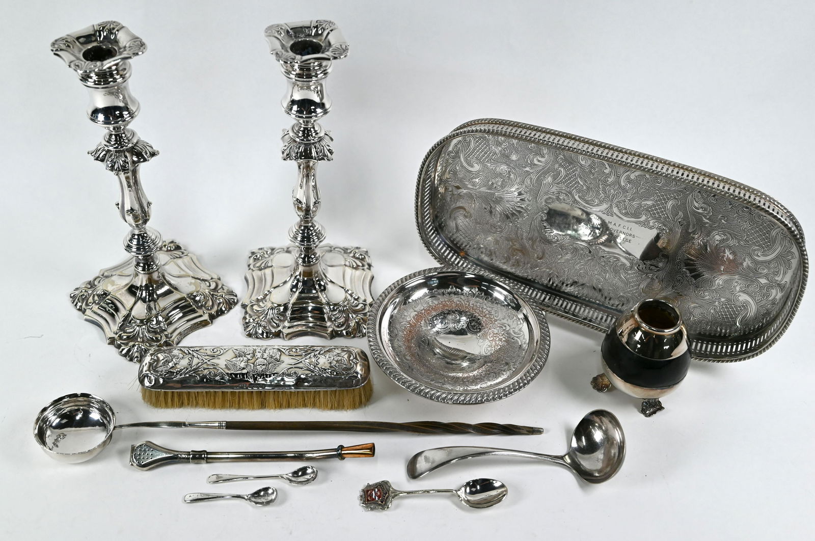 Electroplated candlesticks and other silver and plated