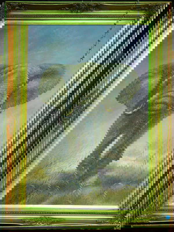 Elephant on o/canvas in gilt frame