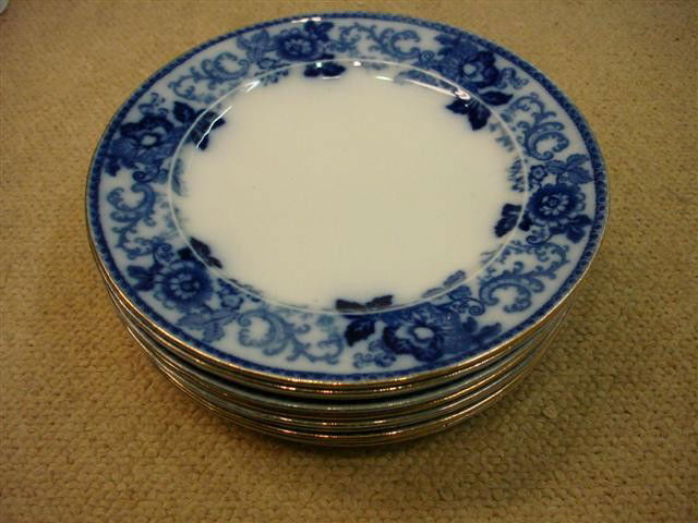 Eleven Flow Blue Meakin "Luciville" Pattern