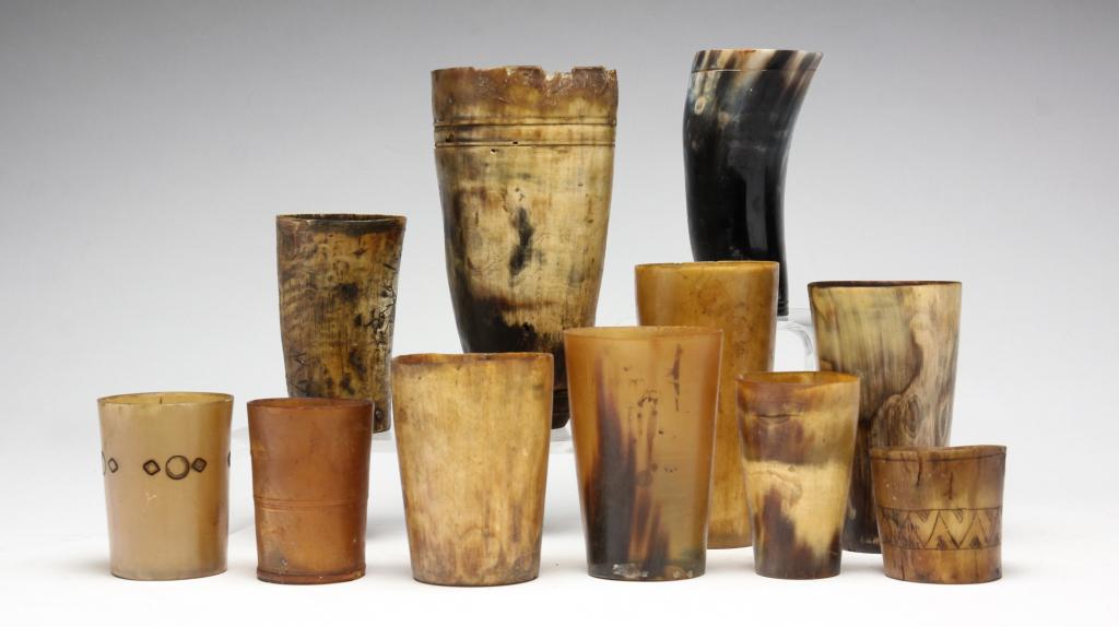 ELEVEN HORN CUPS.