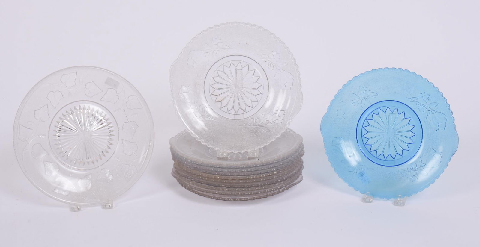 ELEVEN PRESSED GLASS PLATES