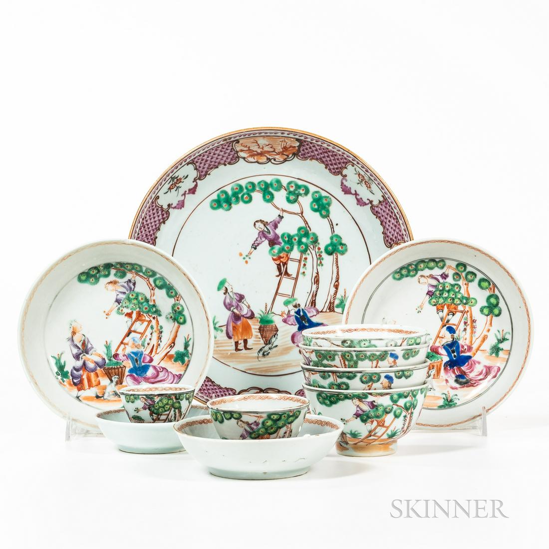 Eleven Small "Cherry Pickers" Pattern Export Porcelain