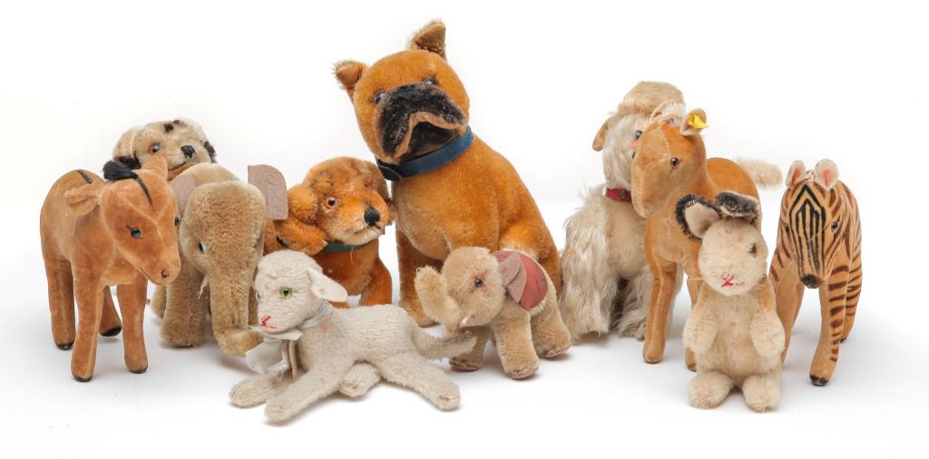 ELEVEN SMALL GERMAN STEIFF ANIMALS.