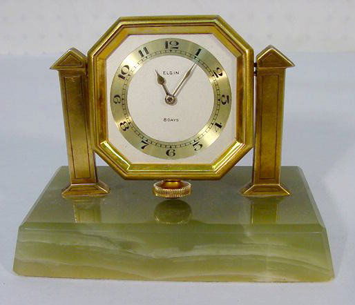 Elgin Stem Wind Desk Clock On Green Onyx Base