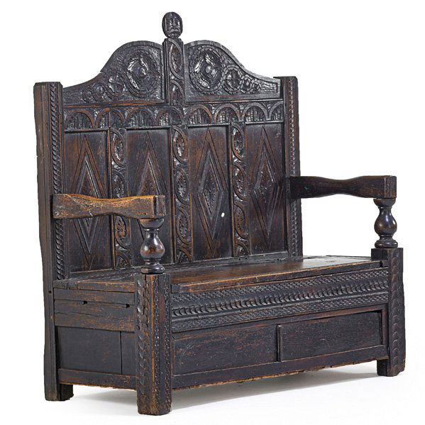 Elizabethan Gothic Oak Deacon's Bench