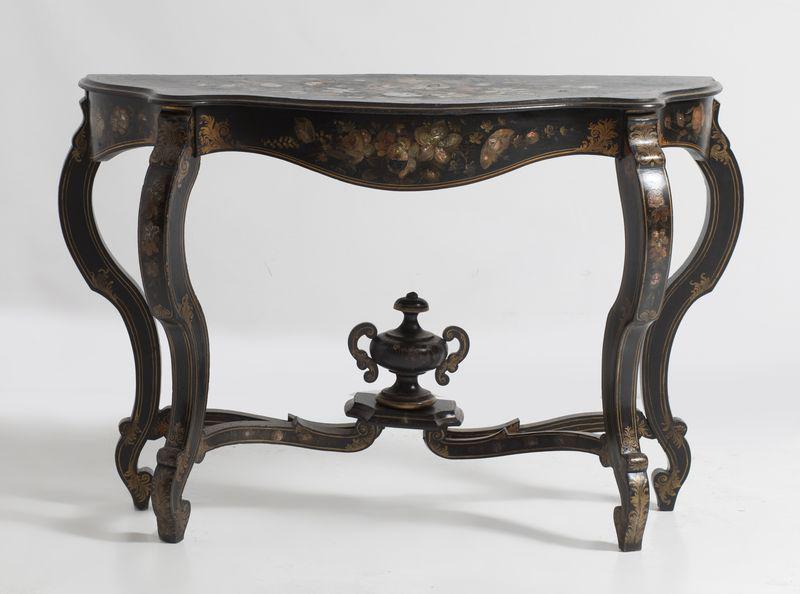 A GILTWOOD AND PAINTED SATINWOOD DEMI-LUNE CONSOLE TABLE, IN THE MANNER OF THOMAS CHIPPENDALEDreweatts Donnington Priory4.4(34)£460
