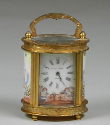 A MINIATURE PORCELAIN CARRIAGE CLOCK. 8 cm high inc handle.Hannam's Auctioneers Ltd4.3(415)£601 day Left