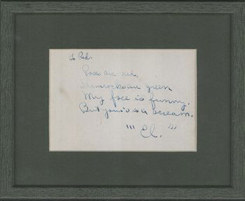 Albert Einstein – Handwritten Equations (Hand Signed)5 days LeftJacqueline Kennedy Autograph Letter Signed. FourFeb 26, 2026George S. Patton Autograph Letter Signed to "DeaFeb 26, 2026Sgt Alick M. Hayward 24th Mass Vols. framed letterMar 02, 2026WILDE (OSCAR) Autograph fair copy signed and dated of the poem 'In The Garden'; with gilt tool...6 days LeftWILDE (OSCAR) Autograph letter signed ('Ever your affectionate/ friend/ Oscar Wilde') to Beatri...6 days LeftWILDE (OSCAR) Autograph epigram of four lines, [c.1894]; with facsimile copy of The Chameleon (2)6 days LeftJacqueline Kennedy Autograph Letter Signed TwiceFeb 26, 2026Napoleon Bonaparte Letter Signed. One page, 7 1/Feb 26, 2026PRESIDENT DWIGHT EISENHOWER SIGNED NOTEMar 07, 2026WILDE (OSCAR) One page of Wilde's autograph working manuscript of his poem 'The Sphinx', [n.d. b...6 days LeftMaj. William Ames arrested soldier for drunkennessMar 02, 2026WILDE (OSCAR) Autograph letter signed to Beatrice Faudel-Phillips, [November 1886]6 days LeftWILDE (OSCAR) Autograph letter signed to Anne Wakefield Richardson, Tite Street [1887]6 days LeftJohn F. Kennedy – Handwritten Dinner Reservation with Jackie Note – Returning from Palm Jacqueline Kennedy Autograph Letter Signed. ThreFeb 26, 2026