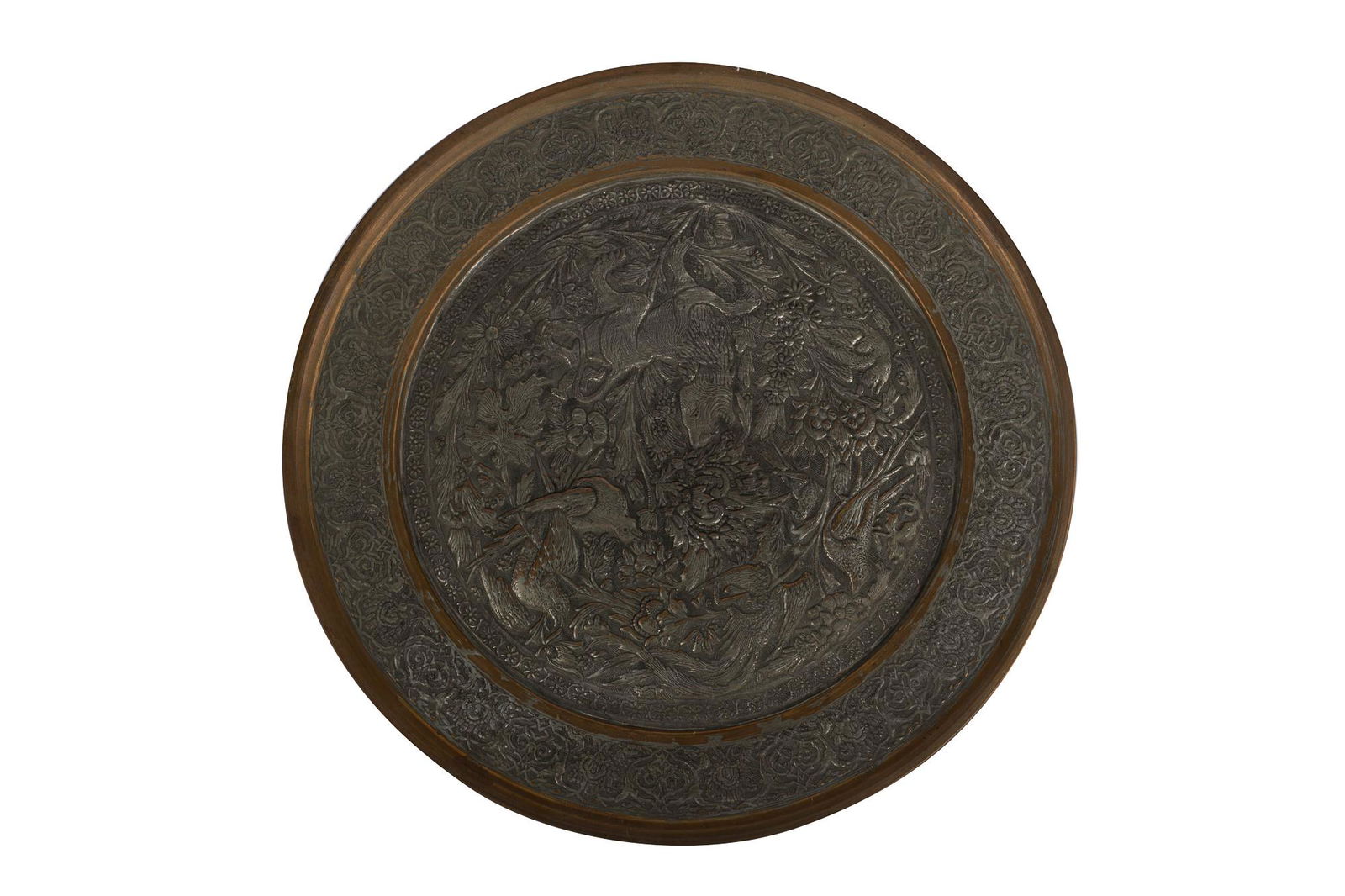 LARGE ANTIQUE ISLAMIC ENGRAVED BRASS PLATE