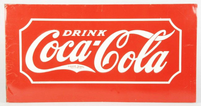 Embossed Tin Coca-Cola Cooler Panel Sign.