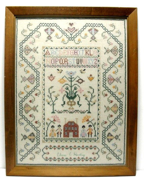 Embroidered Sampler By Clara Harding Ca. 1970