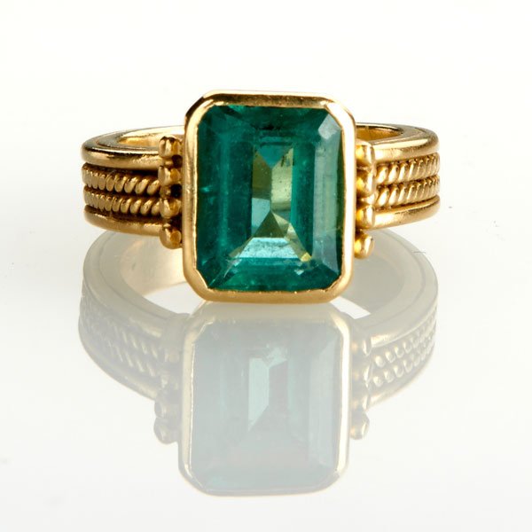 SoldEmerald, 14k Yellow Gold Ring.Emerald, 14k Yellow Gold Ring. Featuring one emerald-cut emerald weighing approximately 1.25 ct., bezel set in a 14k yellow gold mounting. {Size: 6, Gross Weight: 1.0 dwts}See Sold Price