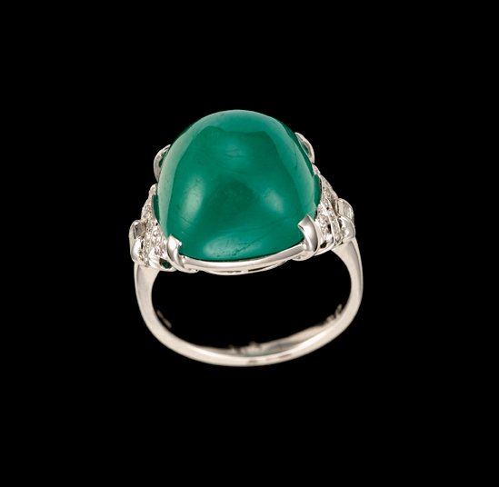 Emerald and diamond dinner ring, art deco, Large