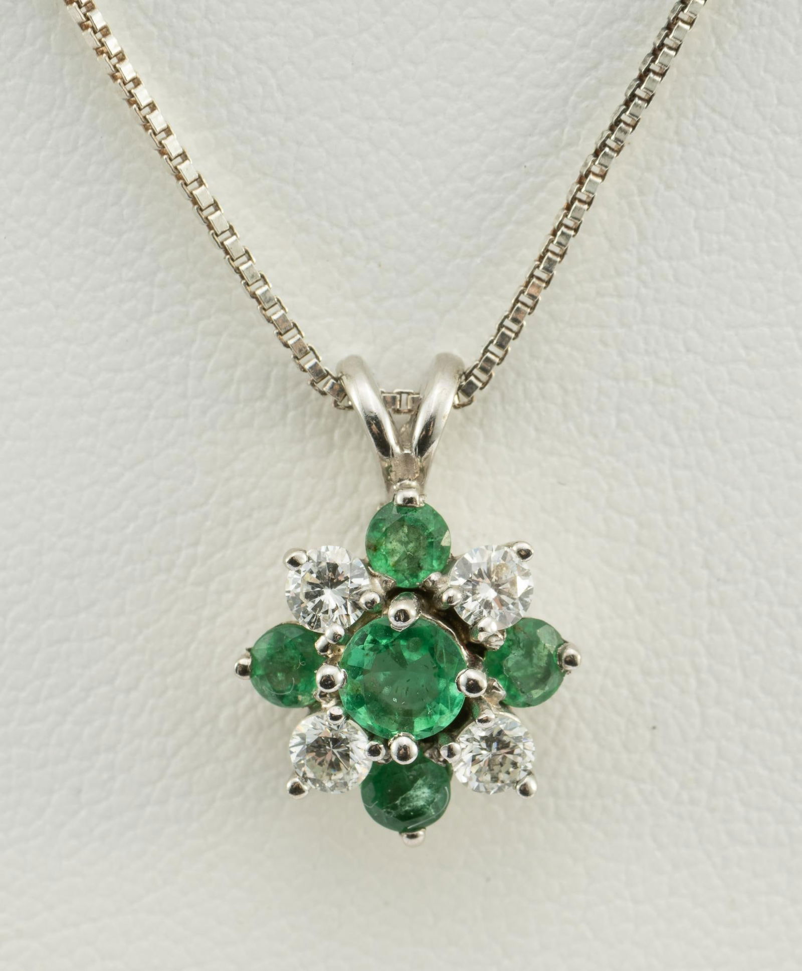 14k White Gold Emerald Diamond Flower Pendant Adjustable NecklaceMynt Auctions4.4(835)$1005 days Left