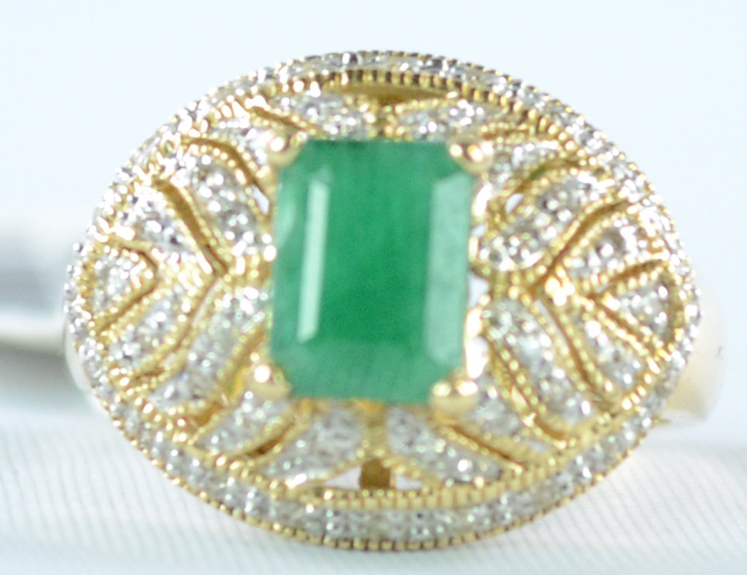 14k Gold 3.00ct Emerald 2.00ct Diamond Ring