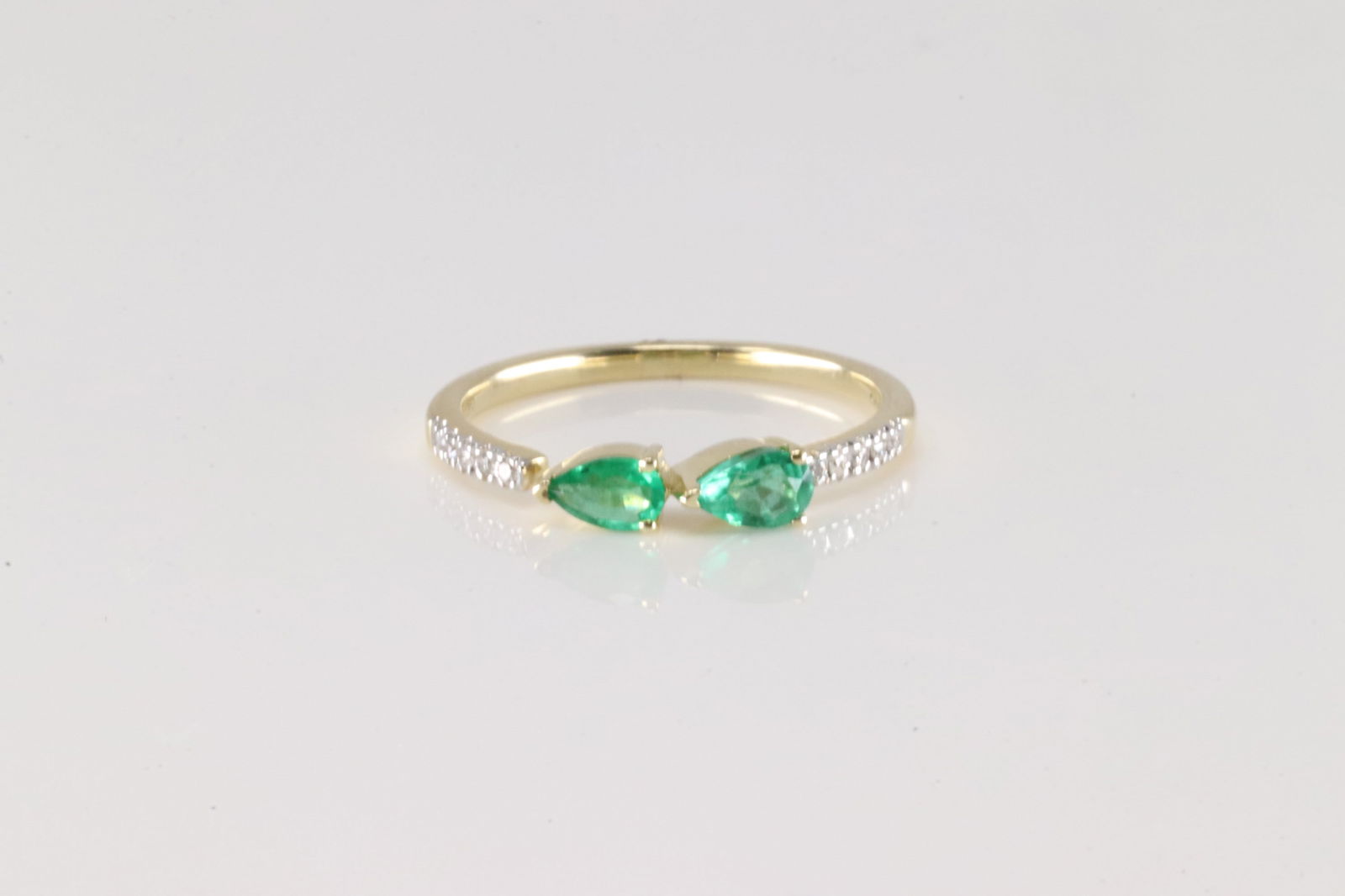 Exquisite emerald brilliant diamond ring in 750 yellow gold