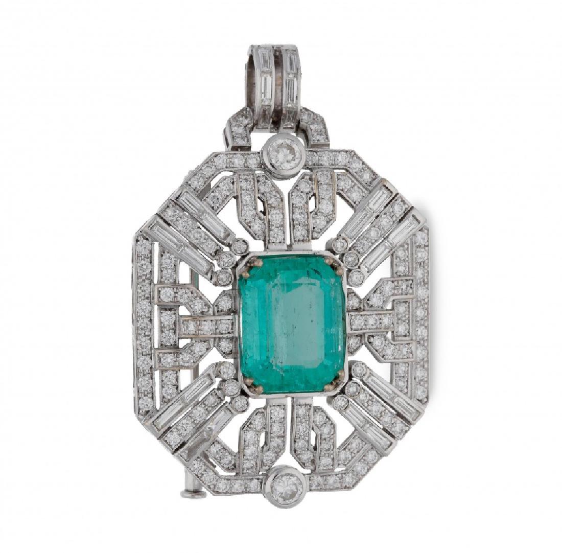 Emerald and diamonds pendant brooch