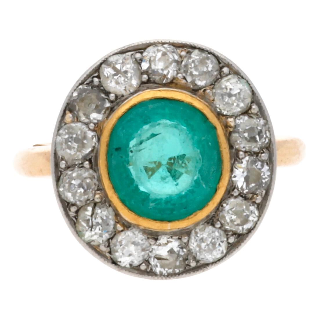 Emerald Diamonds Ring 14kt 1.20ct Edwardian Deco**