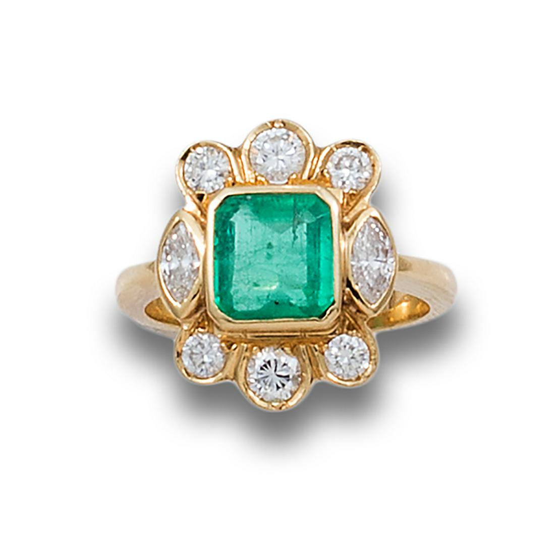 EMERALD AND DIAMONDS ROSETTE RING, IN YELLOW GOLD