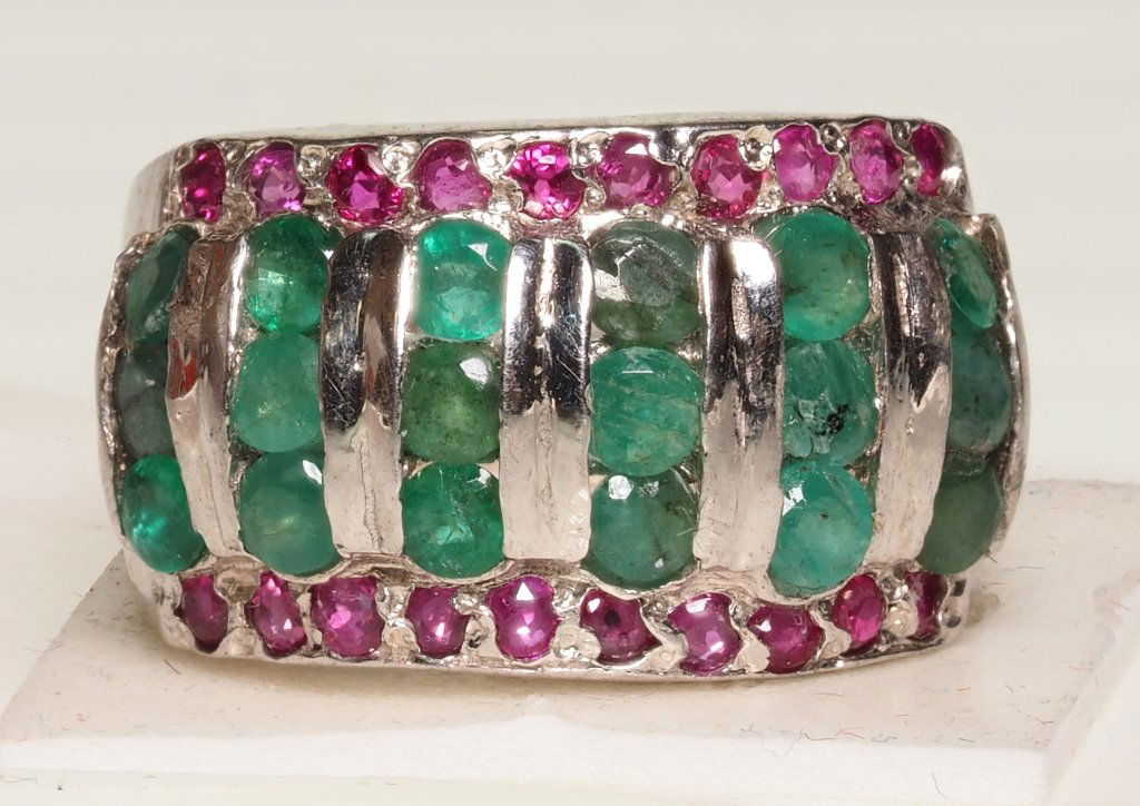 SoldNatural Emerald and Ruby 925 Sterling Silver Ring Jewelry 5.85 Grams Size 8Product ID: 808500404 Product Type: 925 Sterling Silver Fine Jewelry Jewelry Weight: 5.85 Grams. Gemstones Color: Mixed Color Metal: Solid Silver 92.5%. Gemstone Detail: Mixed Gemstone At Your ServiceSee Sold Price