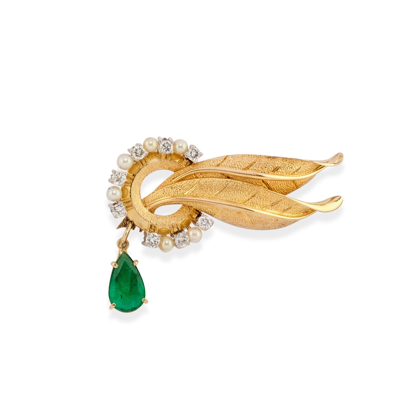 Emerald and Diamond Brooch in 18K Gold and Platinum by Trabert Hoeffer MauboussinDiamond Depot4.3(11)$10,2502 days Left