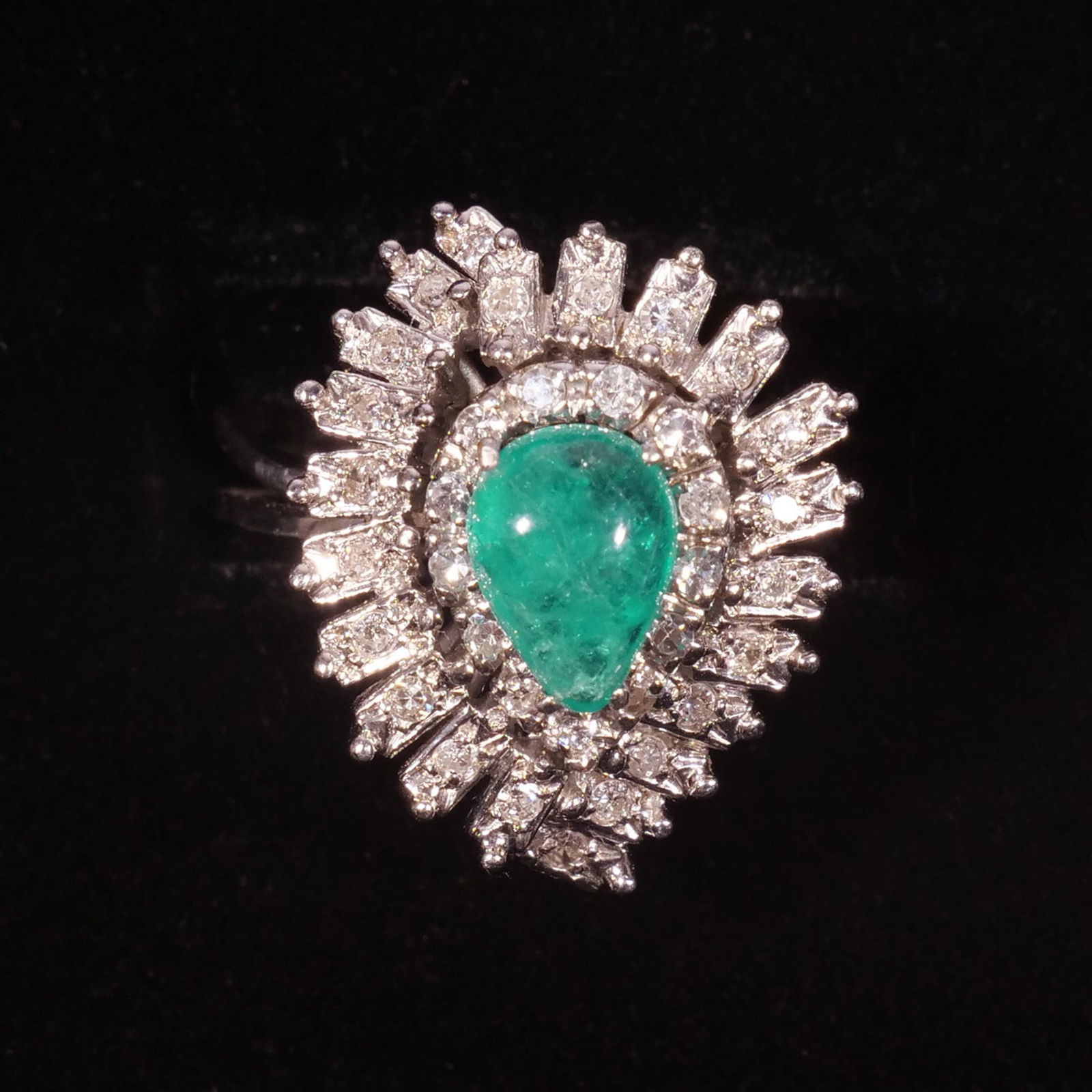 EMERALD CABOCHON, DIAMOND, & WHITE GOLD RING