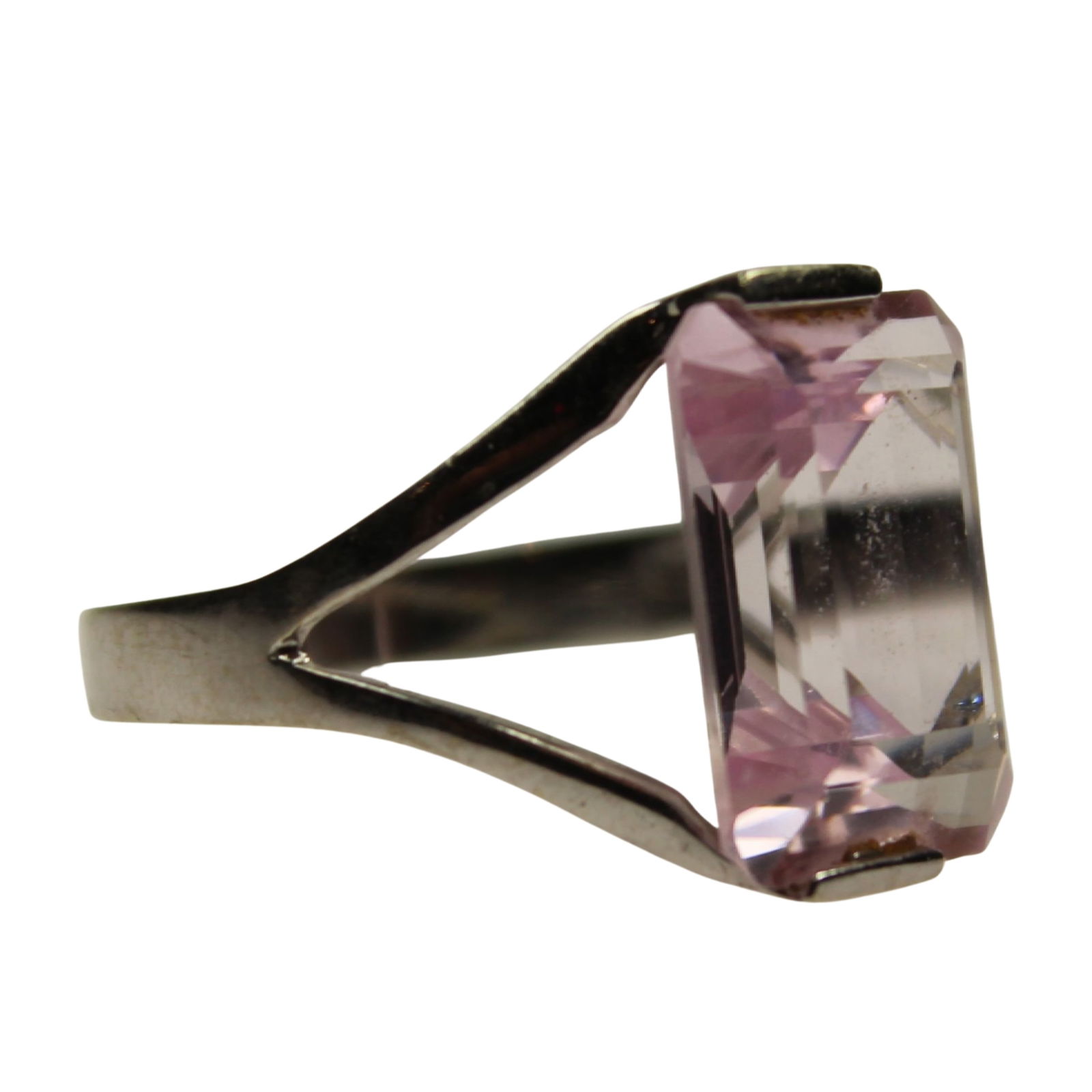 Emerald-cut Kunzite Ring in 18ct White Gold