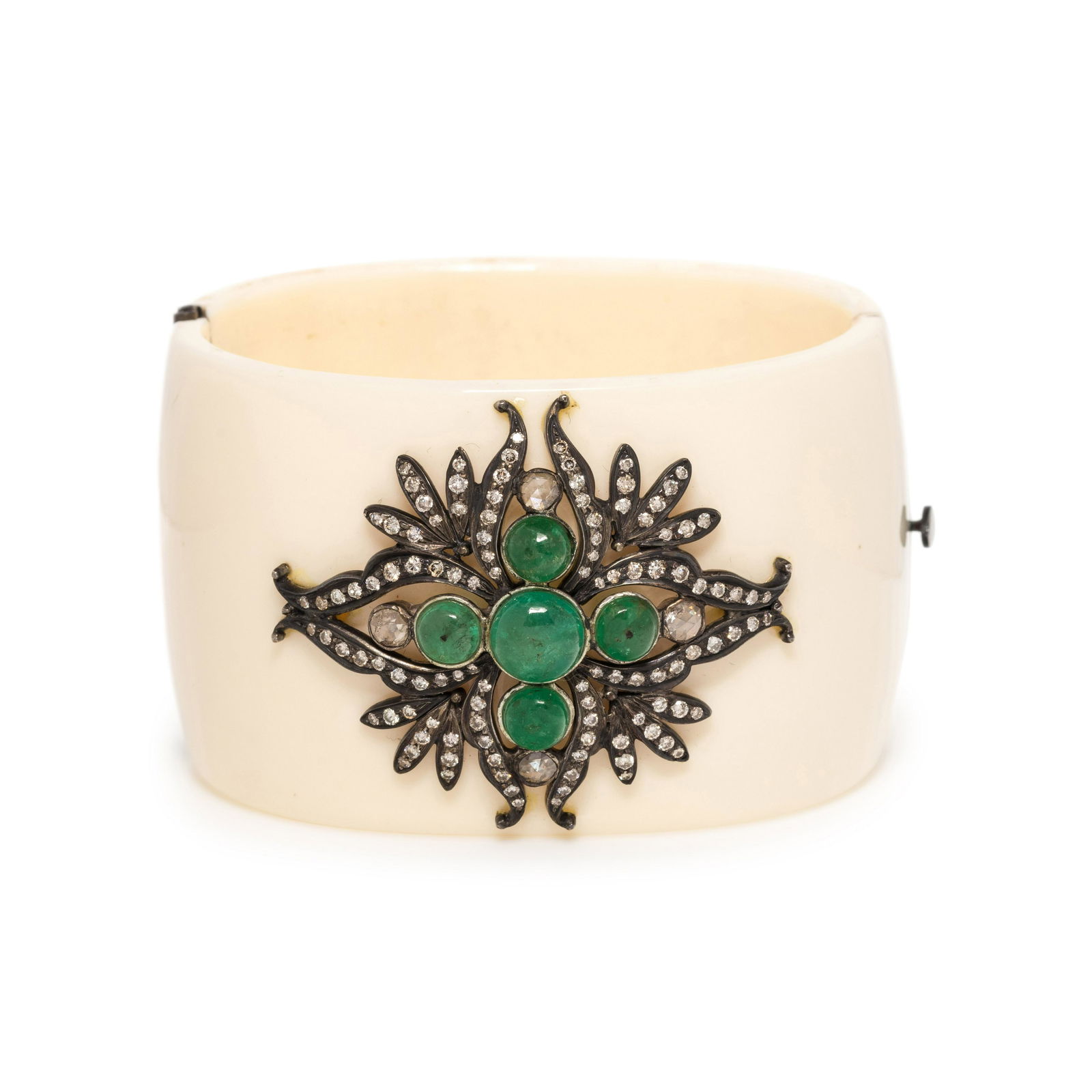 EMERALD, DIAMOND AND PLASTIC BANGLE BRACELET