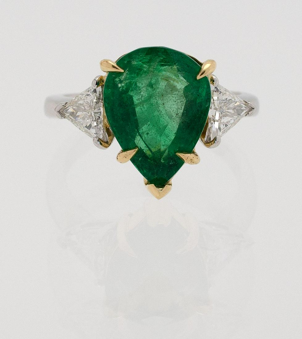 EMERALD, DIAMOND, PLATINUM AND GOLD RING Pear-form