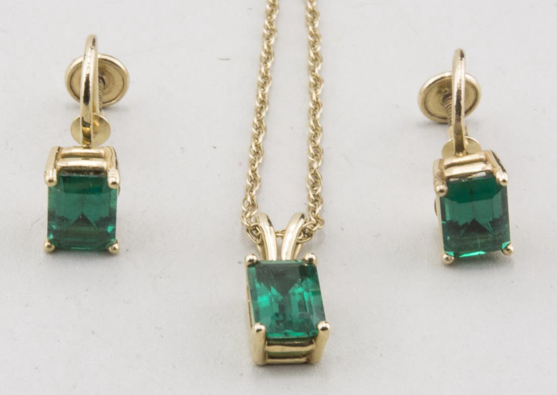 Plated 18KT Yellow Gold 1.71ctw Dyed Emerald and White Topaz Jewelry Set1 Great Deal Auctions 4.6(286)$11 day Left