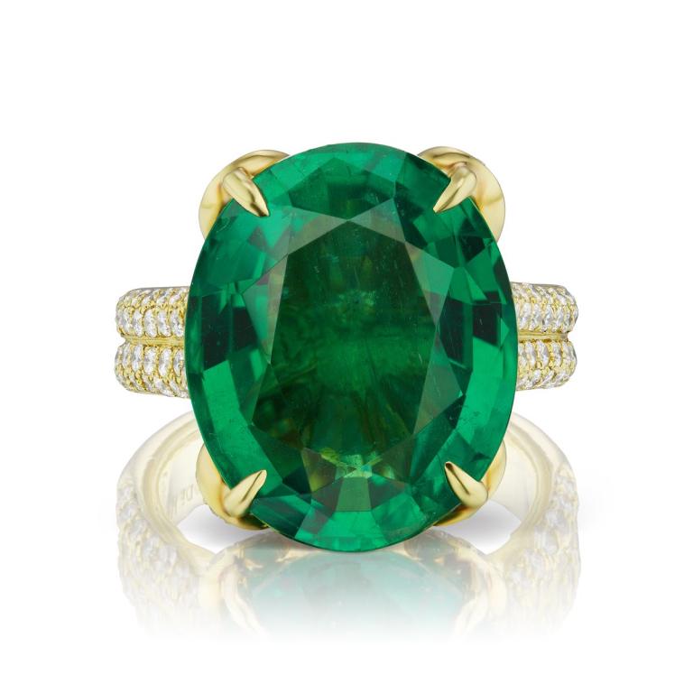 14K Yellow Gold 8.46ct Emerald and 2.58ct Diamond Ring