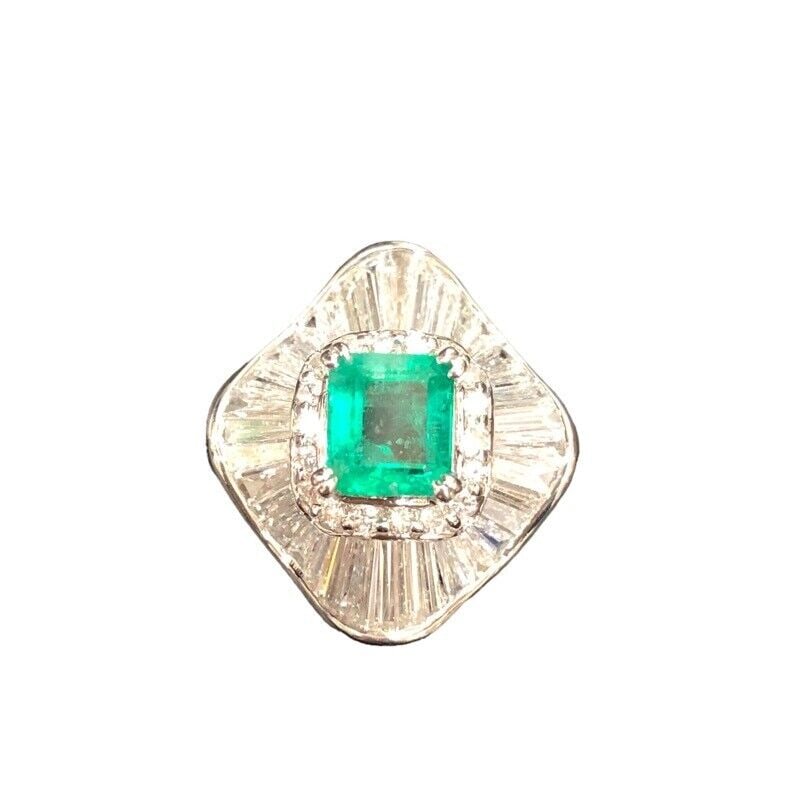 Platinum 7.85 Ct Emerald Diamond Ring 70 Stones F-G VVS-VS