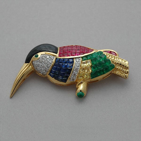 EMERALD, RUBY, SAPPHIRE, DIAMOND BIRD BROOCH
