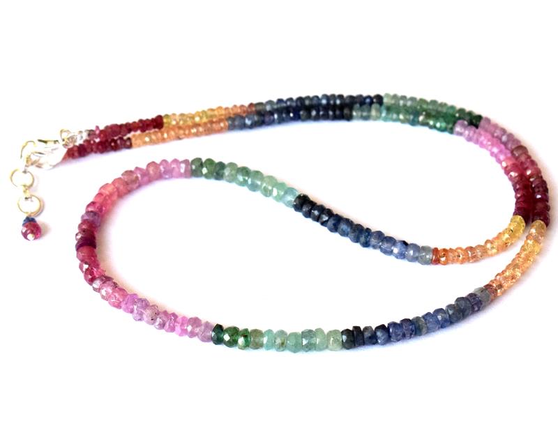 EMERALD RUBY SAPPHIRE FACETED NECKLACE