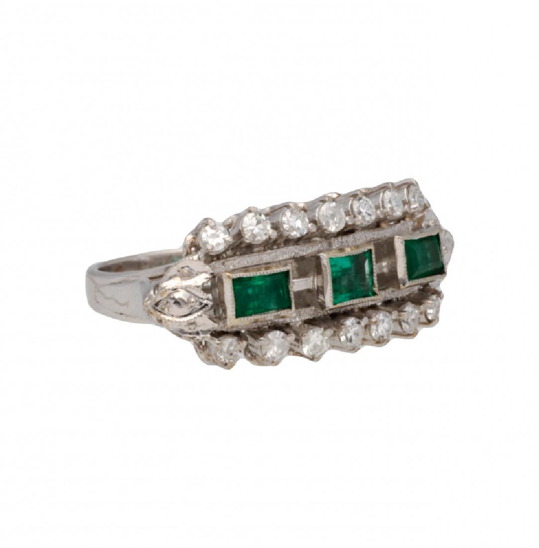 PLATINUM EMERALD AND DIAMOND RING, RETRO PERIOD