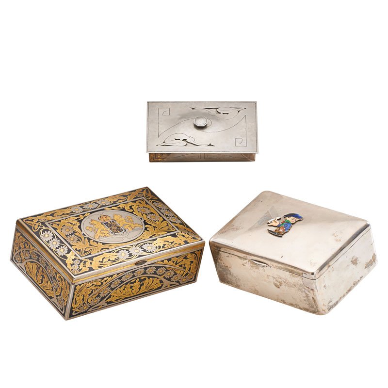 LOT OF THREE CHINESE VINTAGE JEWELRY BOXESMar 01, 2026Reed & Barton & Others Flatware Boxes 4pc LOTFeb 26, 2026Lot 6 19th C Lithographed Tin Christmas BoxesMar 07, 2026LOT OF BISCUIT AND CHOCOLATE TINSFeb 26, 2026Antique lap desk, Chinese lacquer jewelry box, and more boxesFeb 26, 2026(4) COLLECTION OF CARVED WOOD, INLAID & LEATHER-CLAD TABLE BOXES6 days Left3 Remington Wooden Ammunition Boxes And CratesThree silver cigarette boxes,3 English Boxes & Erhard & Sohne Bronze Box, 19th CFeb 25, 2026MAHOGANY & BRASS JEWELRY BOX & LACQUERED BOX4 days LeftThree Victorian Tunbridge Ware Boxes6 days LeftTramp Art and Folk Art Wooden Jewelry BoxesMar 04, 2026A gilt metal mounted amboyna and bronzed electrotype jewellery casket, an engraved brass and ivo...Two Vintage Fruit-Decorated Tin BoxesFeb 28, 2026Three Antique English Boxes4 days LeftA brass mounted leather playing card case, a gilt bronze mounted leather covered jewellery caske...
