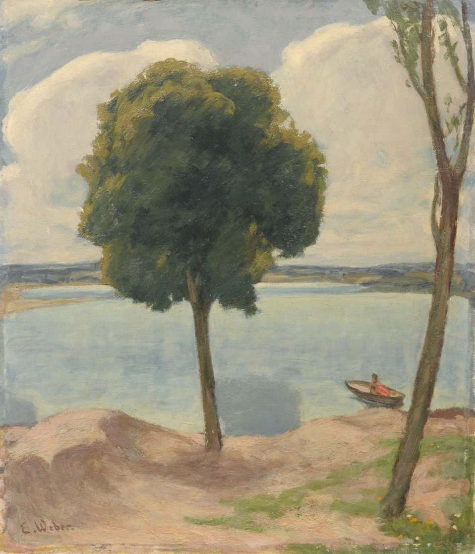 Emil Weber "Seelandschaft mit Baum". No date.