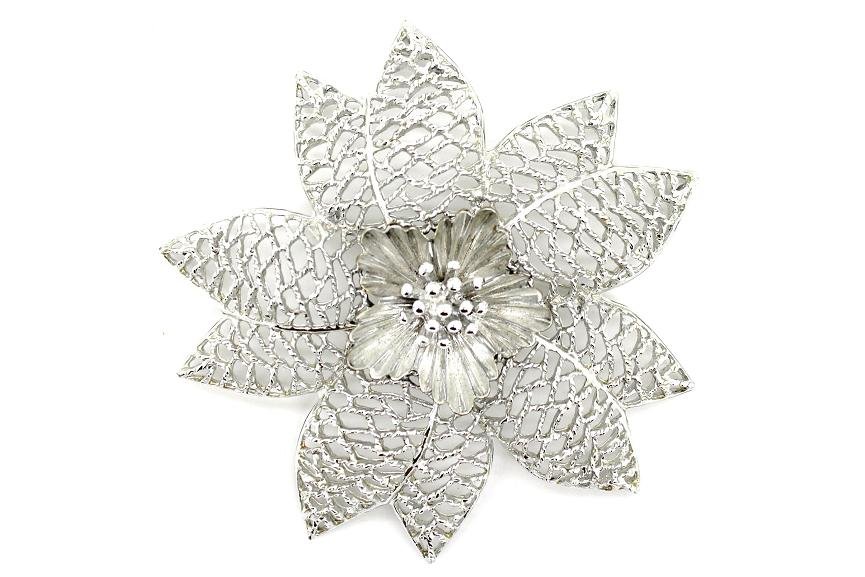 Vintage Sterling Silver Flower Brooch