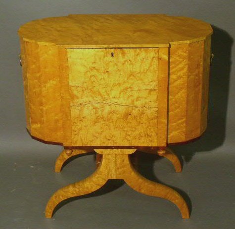 Empire bird's-eye maple sewing table, c.1840. 26.2