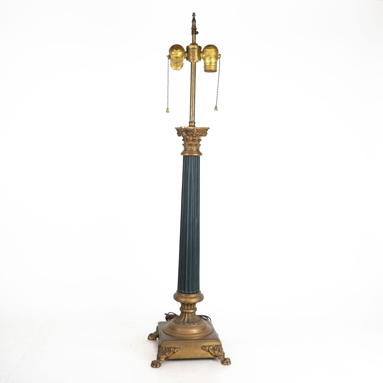 SoldEmpire-Style Column LampGilt metal with fluted, painted post on winged paw feet. Provenance: From the Upper East Side estate of a prominent NYC interior decorator. [32" H].See Sold Price