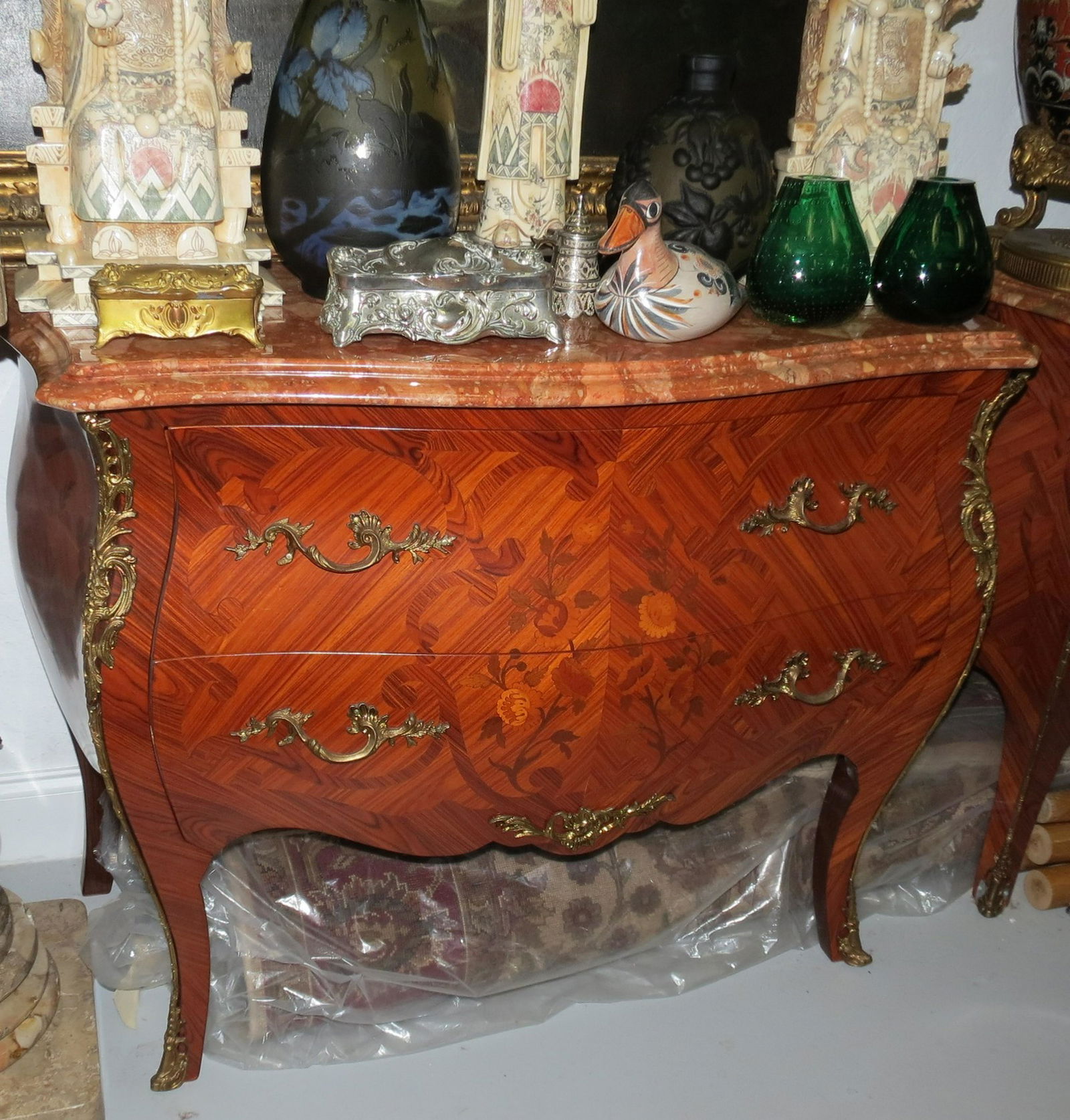 Louis XVI Style Marble Top 5 Drawer Chest #2