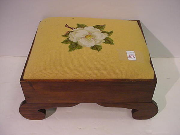 Carved Walnut Upholstered Footstool c.1930Mahogany Needlepoint Top Foot Stool6 days LeftCarved Walnut & Needlepoint Top Footstool6 days LeftQueen Anne Style Carved Mahogany Footstool, Needlepointe Upholstery 1920, H 8" L 14" Depth 12"Mar 19, 2026American Empire Mahogany Trestle Bench with Needlepoint Upholstery, ca.1840Mar 07, 2026Antique Victorian Footstool with Floral Needlepoint Upholstery4 days LeftVictorian Foot Stool with Embroidered TopMar 08, 2026Early 20th Century Antique Needlepoint FootstoolMahogany Needlepoint Top Foot Stool By Biggs6 days LeftAMERICAN VICTORIAN CAST-IRON FOOT REST / STOOLMar 06, 2026Cherry Upholstered Top Bench by Dixie Furniture6 days LeftClassic 19th Century American Empire Flame Mahogany Footstool C184014 hrs LeftAntique Mahogany Empire Ottoman6 days LeftFootstool, Round, Cast Iron with Beadwork Upholstery 1900, H 9" Dia. 12"Mar 19, 2026Antique Mahogany Needlepoint Seat Arm Chair6 days LeftMahogany Upholstered Top Stool6 days Left
