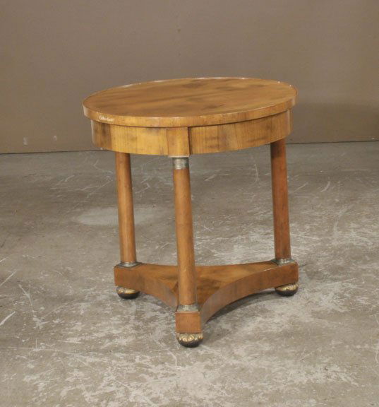 Empire style fruitwood circular side table on three