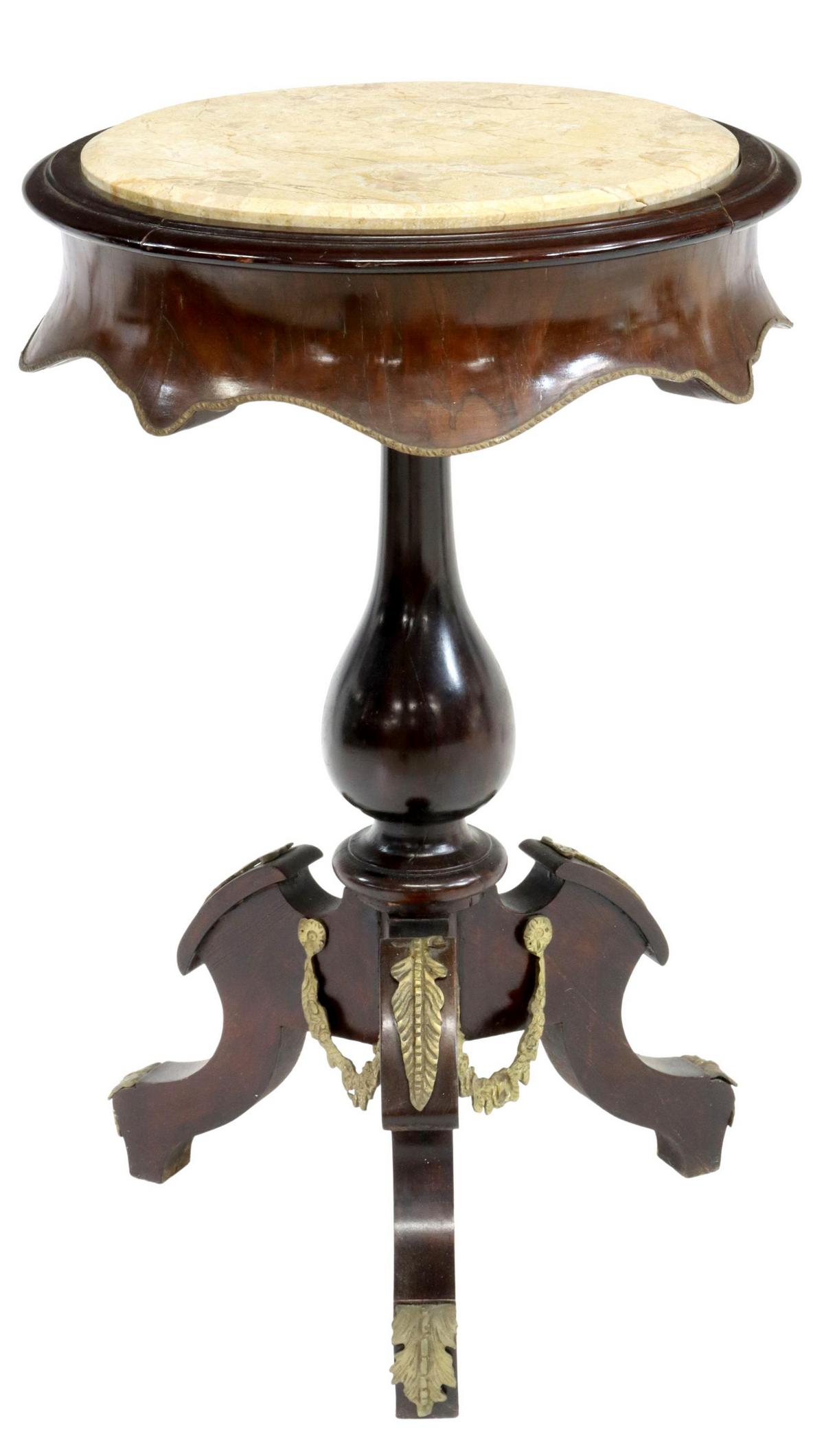Regency Style Double Pedestal Mahogany Dining TableFeb 26, 2026(2) NEOCLASSICAL STYLE SPECIMEN MARBLE-TOP RAM'S HEAD CONSOLE TABLES4 days LeftLouis XV Style Round Marble Top Brass Gallery Table968 Lots AwayAntique Renaissance Revival M.T. Parlor TableMar 06, 2026Maitland Smith Empire Style Round Marble Top Center Table5 days LeftA GEORGE III MAHOGANY TRIPOD TABLE CIRCA 1760, ALTERATIONSFeb 18, 2026Maitland Smith Neoclassical Pedestal with Marble Top and Gold Highlights6 days LeftRococo Style Portoro Marble Top Walnut TableApr 14, 2026French Empire Marble Top Mahogany Pier Table, early to mid 19th c., H.- 36 1/2 in., W.- 45 1/2 in.,Feb 27, 2026Neoclassical Style Mahogany Plant StandMay 07, 2026Chinese Hardwood and Marble Pedestal TableMar 26, 2026CHIPPENDALE STYLE CARVED MAHOGANY PEDESTAL TEA TABLE3 days LeftLarge Wrought Iron with Marble Top Console Table3 days LeftTALL CHINESE CARVED WOOD TABOURET PEDESTAL PLANT STAND WITH MARBLE INSET TOP3 days LeftChinese Marble Inset Rosewood Pedestal TableFeb 26, 2026French Empire Style Mahogany Granite Top Gueridon, Ca. 1830s, H 28" Dia. 32"19 hrs Left