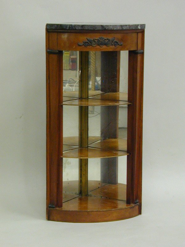 SoldFrench Empire Style Carved Walnut Marble Top Pier Table, c. 1840, the rounded corner figured blackFrench Empire Style Carved Walnut Marble Top Pier Table, c. 1840, the rounded corner figured black marble over a long frieze drawer, on curved cabriole supports with paw feet, on a curved indented basSee Sold Price
