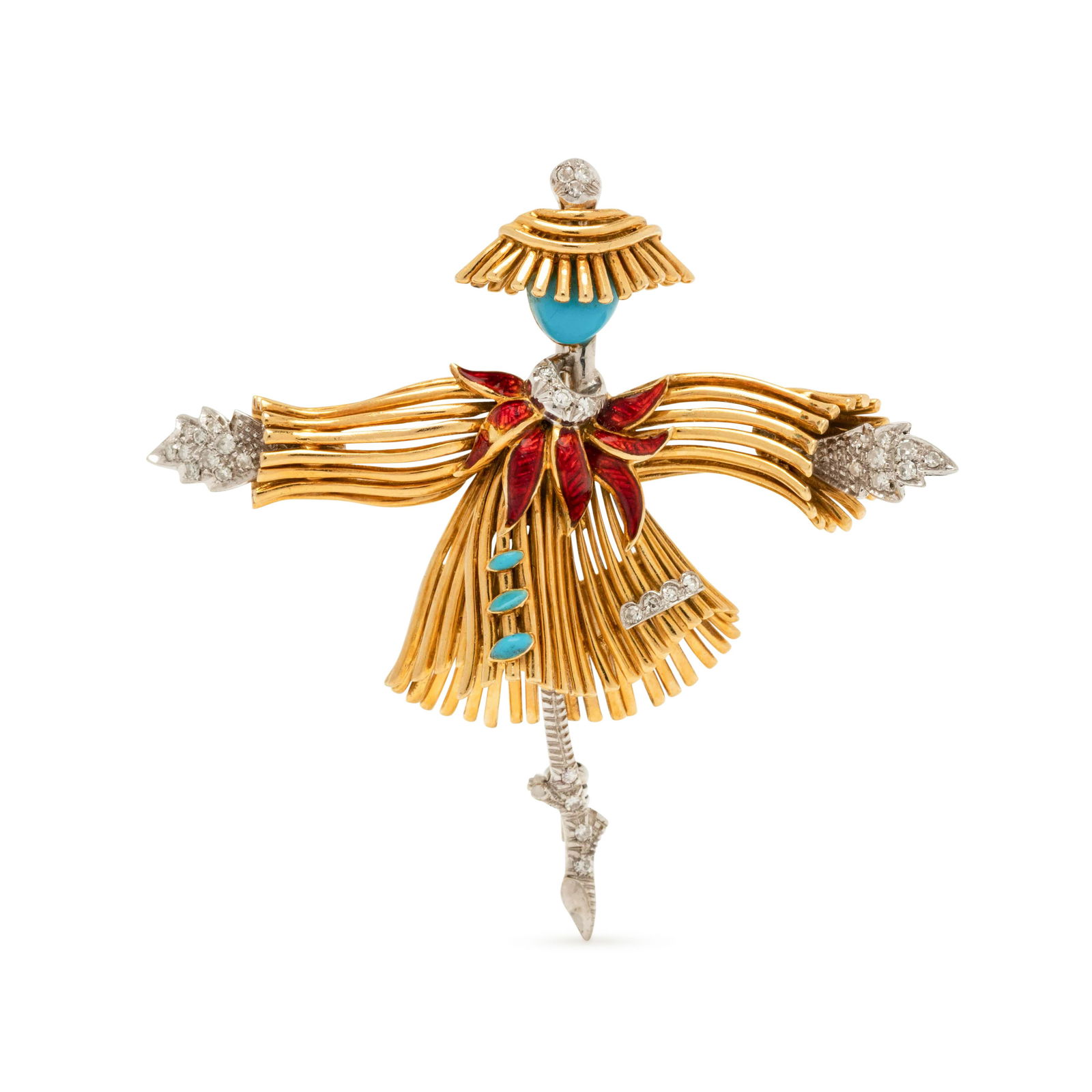 ENAMEL AND DIAMOND SCARECROW BROOCH