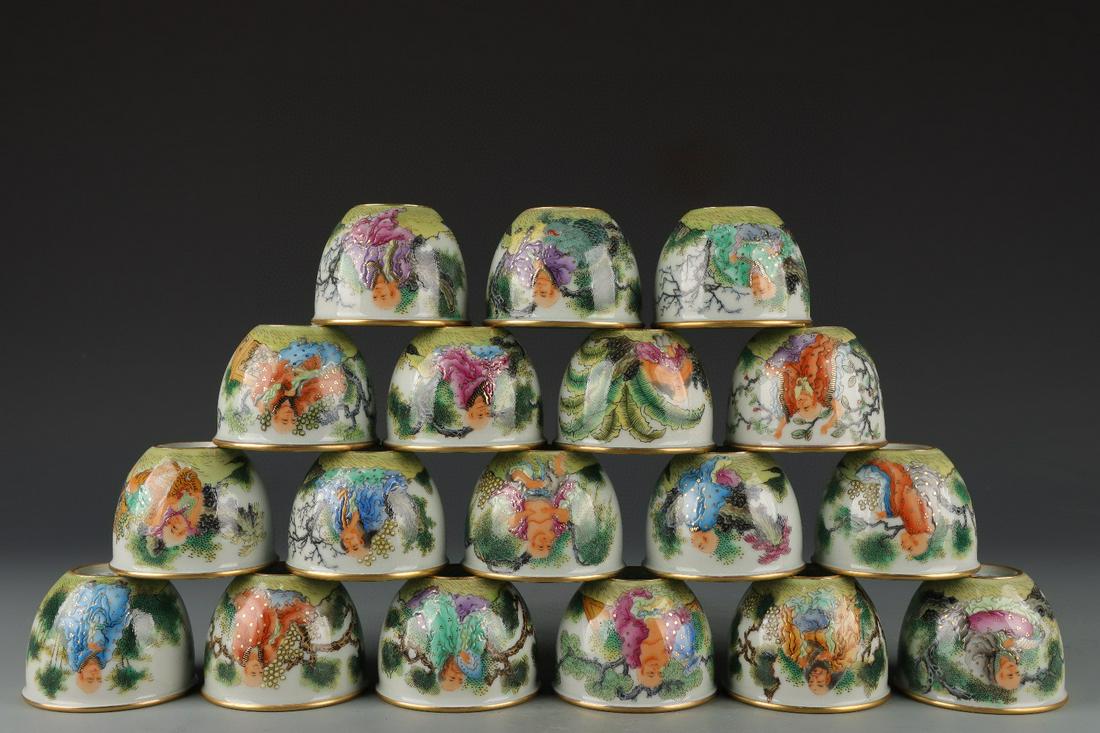 ENAMEL EIGHTEEN LUOHANS CUPS SET