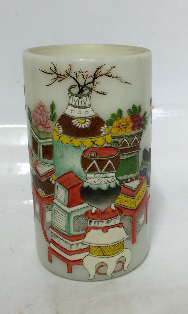 Enamel glass brush pot